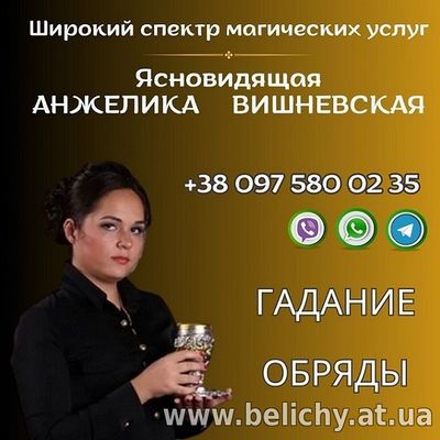 Потомственная предсказательница, ясновидящая в 10 поколении, из древнего рода Дошкещи Анжелика Вишневская поможет в решении трудных жизненных ситуациях!!!
