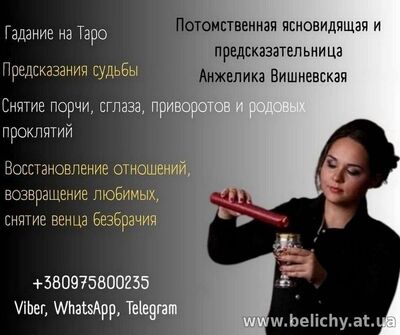Анжелика Вишневская — ясновидящая с семейным даром, которая помогает людям справляться с такими трудностями. Она не обещает чудес, а работает так, чтобы результат был настоящим и безопасным. Помощь можно получи